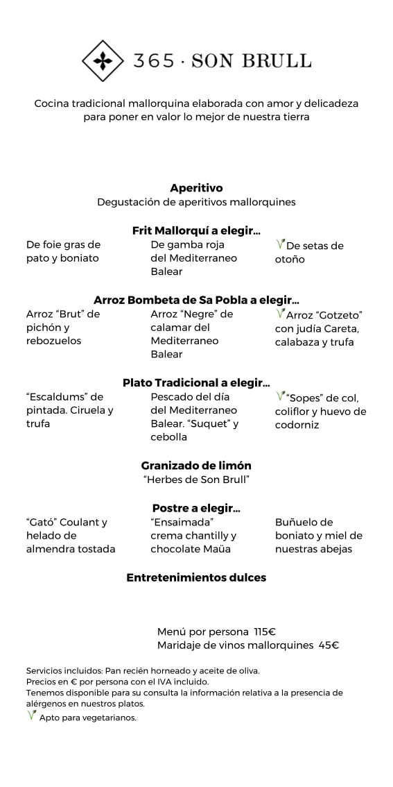 365 Restaurante - Son Brull Hotel & Spa Menu